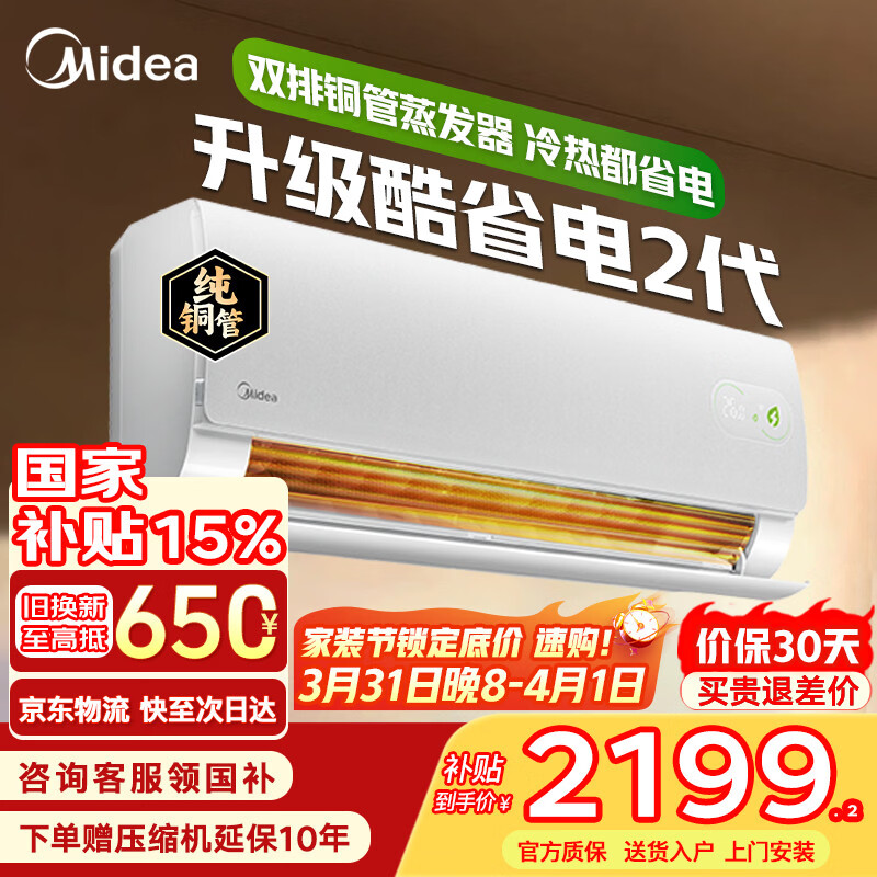 【26年新款】美的酷省电二代大1匹1.5P空调冷暖挂机一级国家补贴