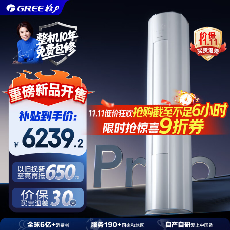 格力(GREE)3匹 云锦三代 新1级能效变频 客厅圆柱立式柜机 冷酷外机省电空调KFR-72LW/NhBa1BAj家电国家补贴