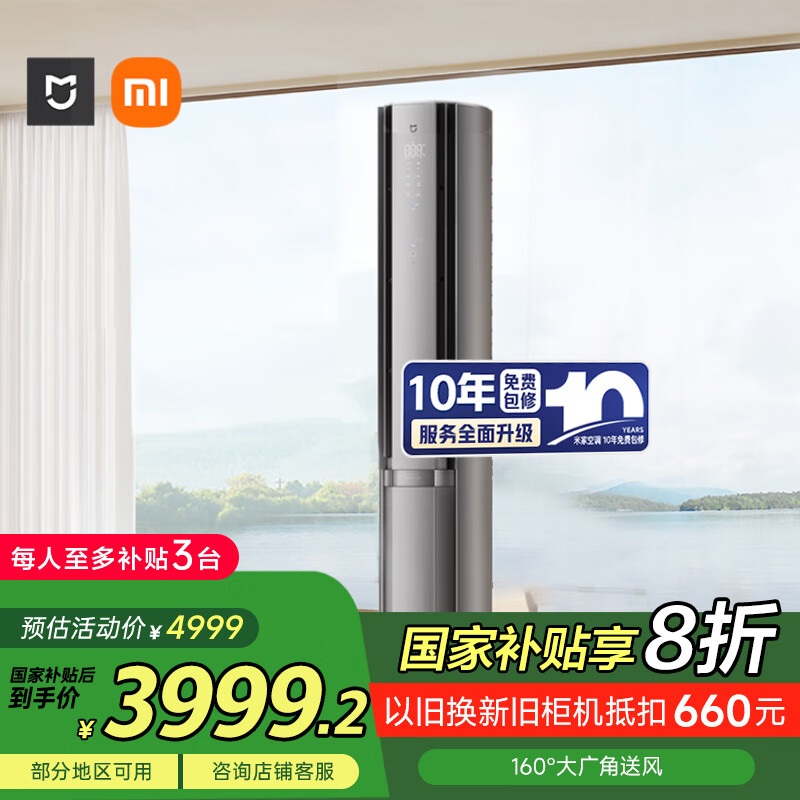 小米(MI)米家 3匹 新一级能效 巨省电 变频冷暖 立式空调柜机KFR-72LW/N1A1【国家补贴20%】整机十年质保