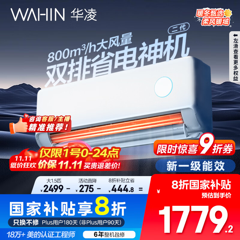 华凌空调1.5匹 新一级能效 超省电Pro 【国家补贴20%】变频冷暖卧室挂机大风口家电以旧换新35HA1III-p 1.5匹 一级能效 35HA1III-p