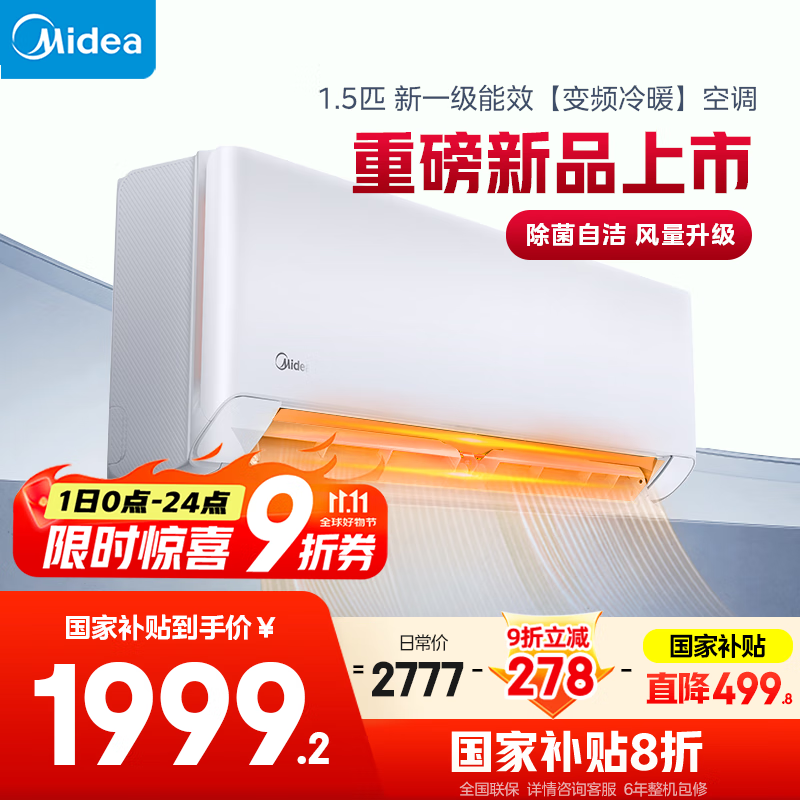 美的空调 新一级能效 变频冷暖 家电国家补贴 节能省电 智能家用卧室挂机 以旧换新 1.5匹 一级能效 KFR-35GW/N8XA1P