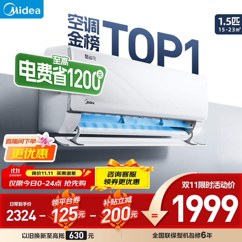 美的(Midea)空调酷省电 变频冷暖 挂机壁挂式 新一级能效节能省电家用卧室挂机 以旧换新 国家补贴20% 大1.5匹 一级能效 酷省电 省电25%