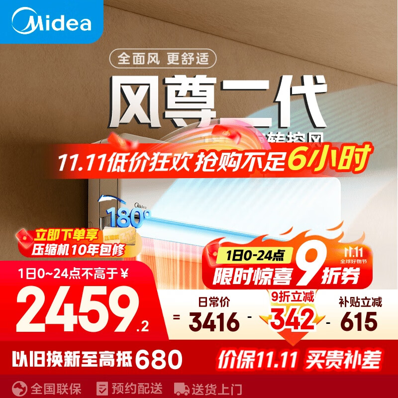 美的空调 大1.5匹全面风空调挂机 风尊二代家电国家补贴20%舒适风空调 超一级能效 KFR-35GW/N8MXC1Ⅱ