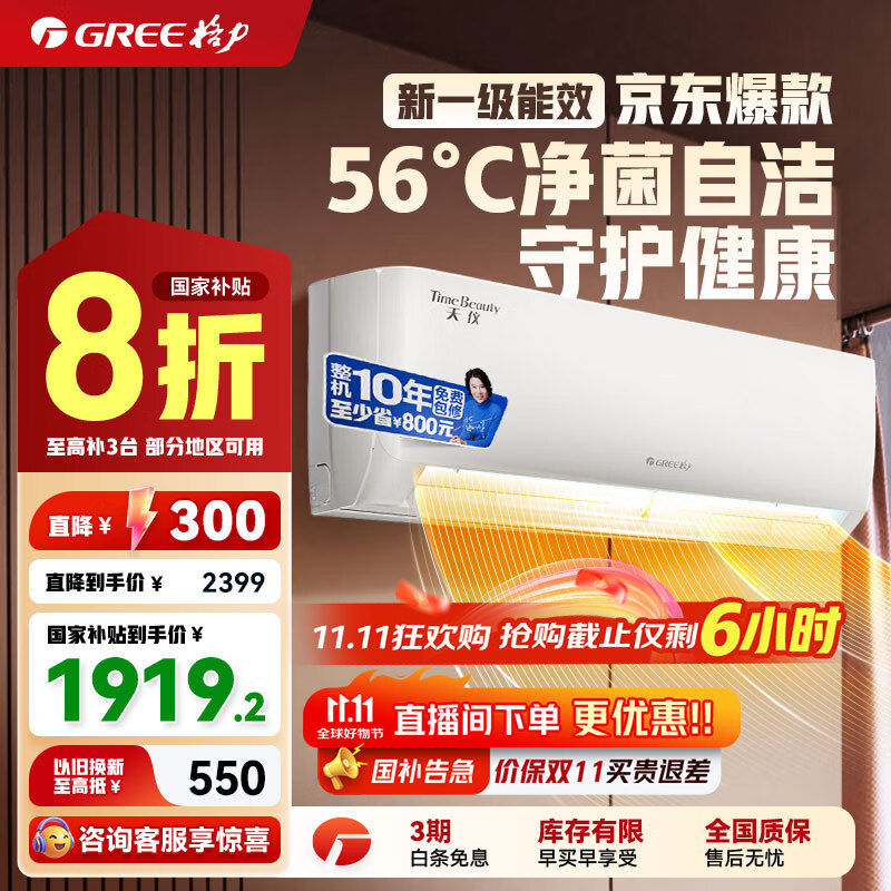 格力(GREE)天仪(云欢同款) 新一级 变频冷暖 56℃自清洁 家用节能壁挂式卧室空调挂机 以旧换新 家电国家补贴 1.5匹 一级能效 天仪挂机 格力