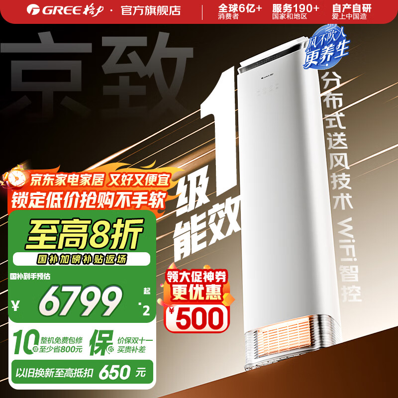 格力(GREE)3匹 京致 分布式送风 风不吹人 自清洁 智能 客厅空调立式高温空调柜机 家电国家补贴 以旧换新 3匹 一级能效 京致