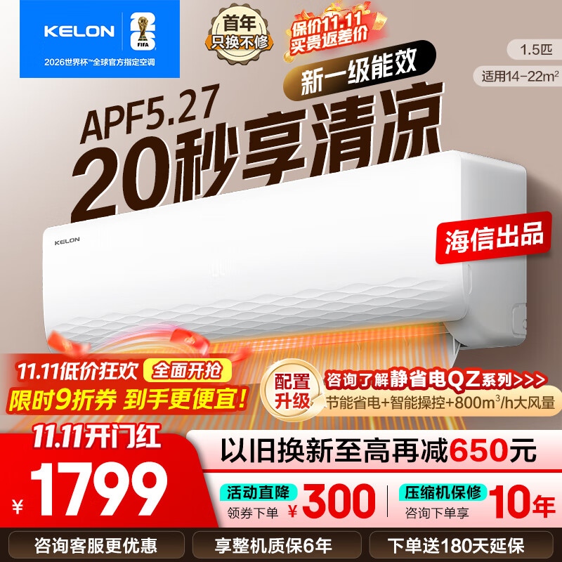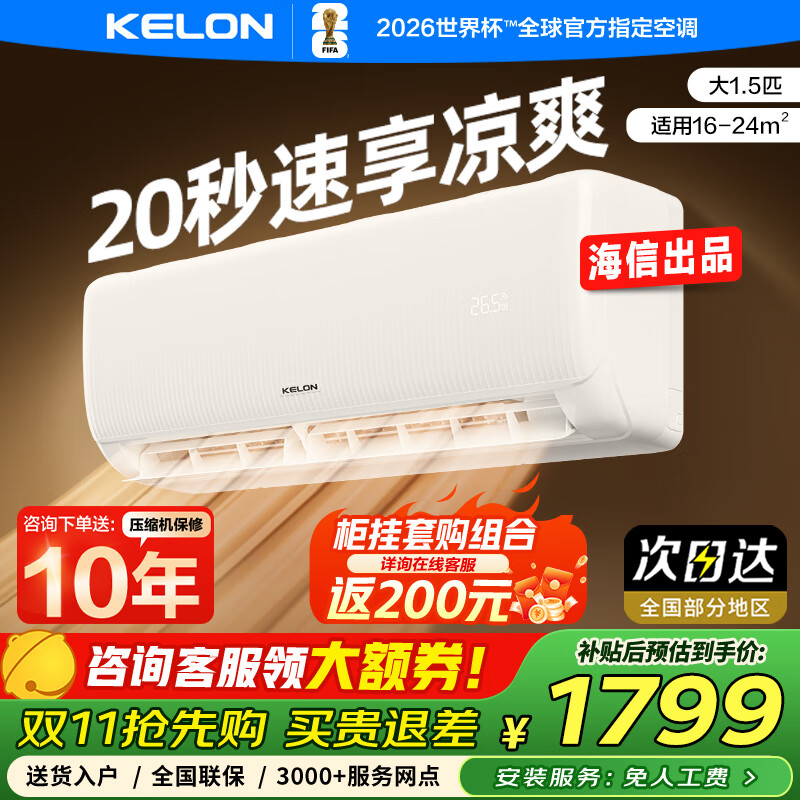 科龙空调 海信出品 静省电 询单减200小布丁QJ 1.5匹挂机 新一级大风量 轻音 变频省电 冷暖卧室壁挂式 1.5匹 一级能效 【询单领红包】送十年压机包修
