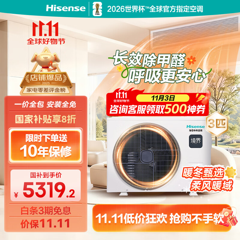 海信中央空调风管机3匹一拖一境界客厅除甲醛家电国家补贴一价全包1级能效HUR-72KF/YDZBp/PCd-1