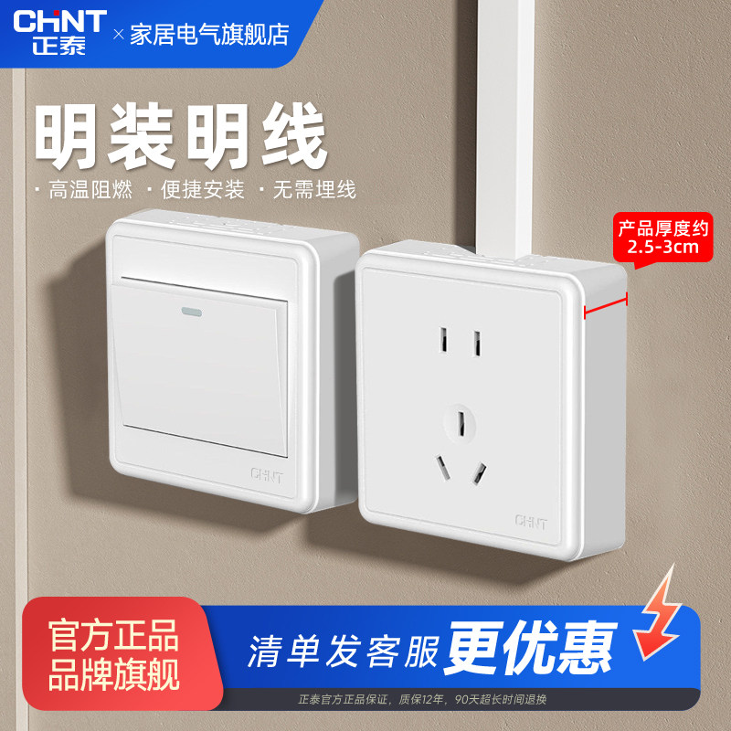 正泰旗舰店明装插座开关空调三孔16A一开五孔10A面板明装多孔1C白