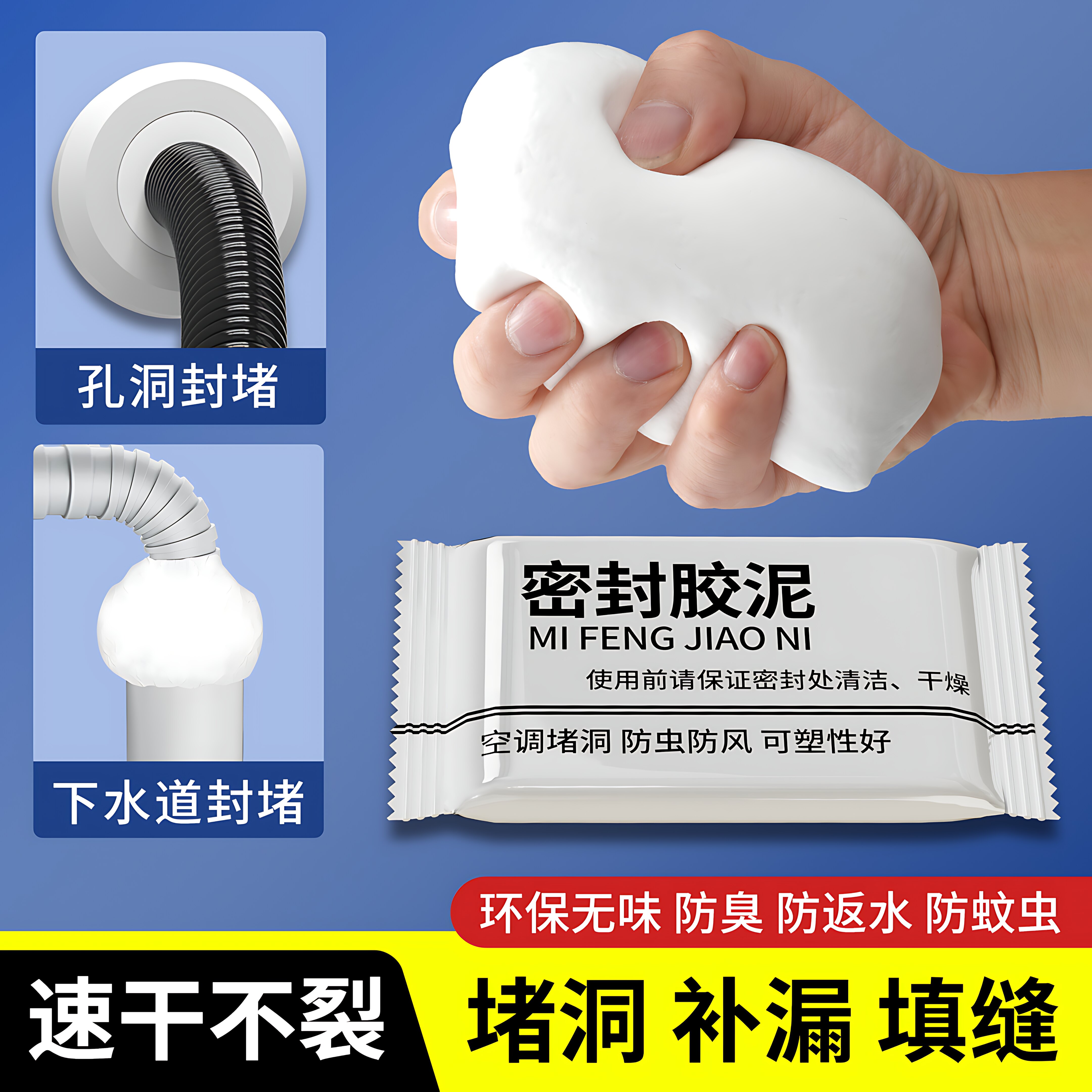 空调孔洞密封胶泥封堵墙洞隔离异味防水防漏防虫下水道防返臭神器