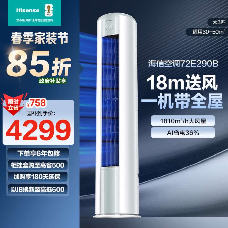 海信大3匹省电立式空调柜机家用一级能效客厅以旧换新补贴官方