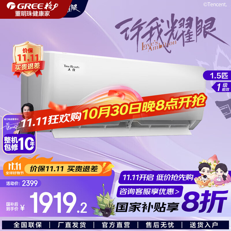 格力(GREE)空调1.5匹/大1匹新一级挂机天仪【国家补贴】节能省电 变频冷暖除湿家用卧室壁挂式支持以旧换新 1.5匹 一级能效 【京仓发货】