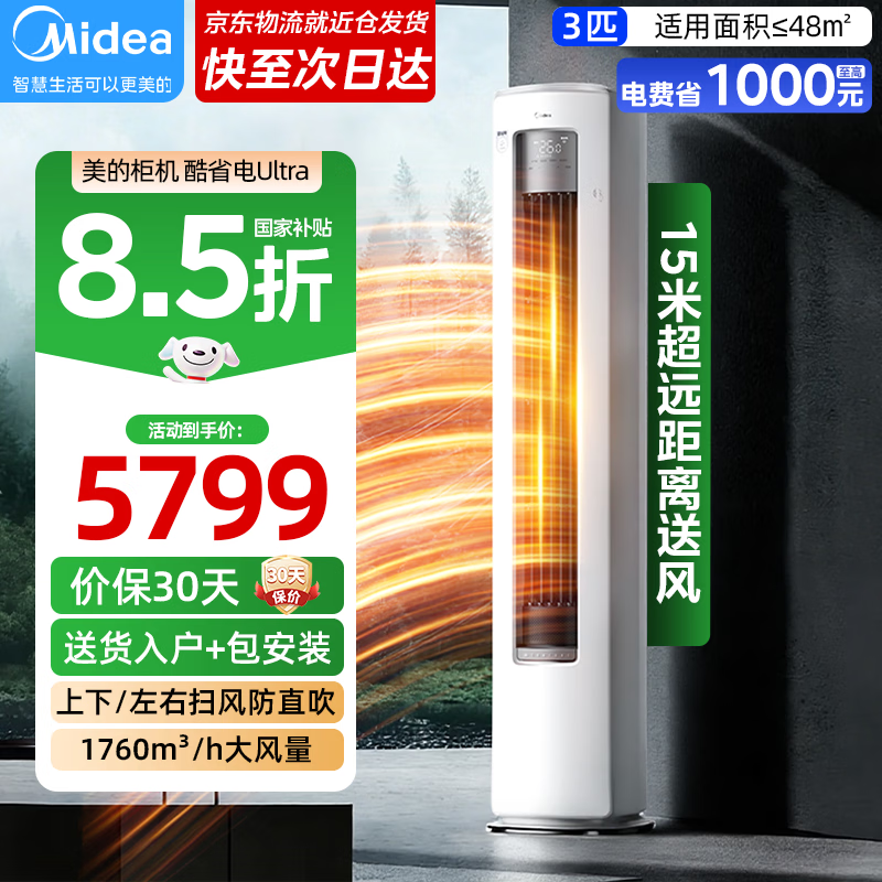 美的(Midea)空调2/3匹柜机大风量制热酷省电Ultra 一级能效变频冷暖AI酷省电技术 国家补贴 自清洁立式柜机 酷省电Ultra 大3匹 一级能效 72KS1-1U