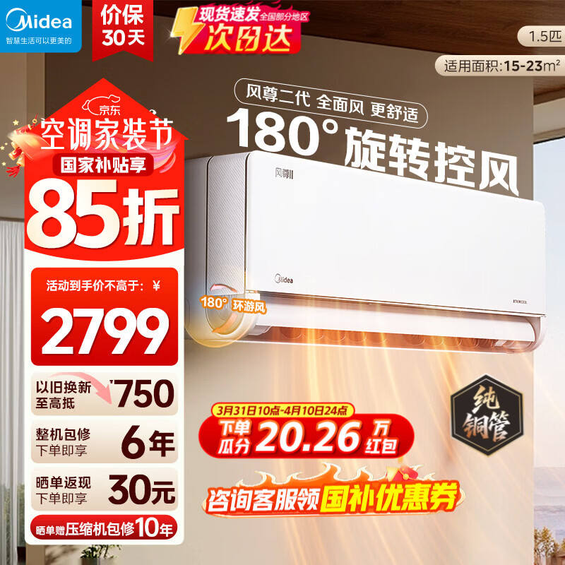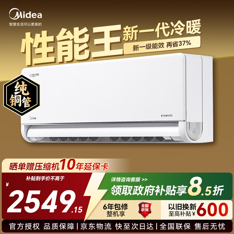 美的(Midea)空调 1.5匹风尊二代 新一代舒适空调 一级能效变频冷暖 壁挂式挂机智能家电云朵系列 国家补贴 1.5匹 一级能效风尊二代 全国联保 配送