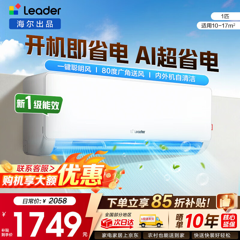 海尔(Haier)空调挂机大1匹/1.5匹/2匹新一级能效节能省电冷暖两用防直吹卧室空调家用净省电小红花家电补贴15% 净省电 大1匹 一级能效新品净省电26E1-1
