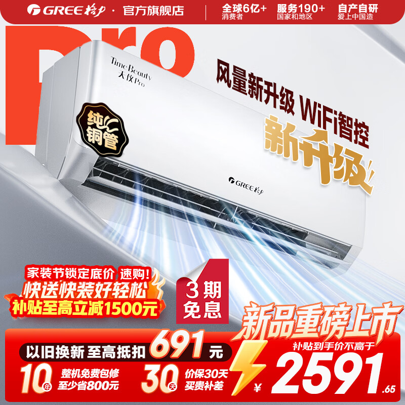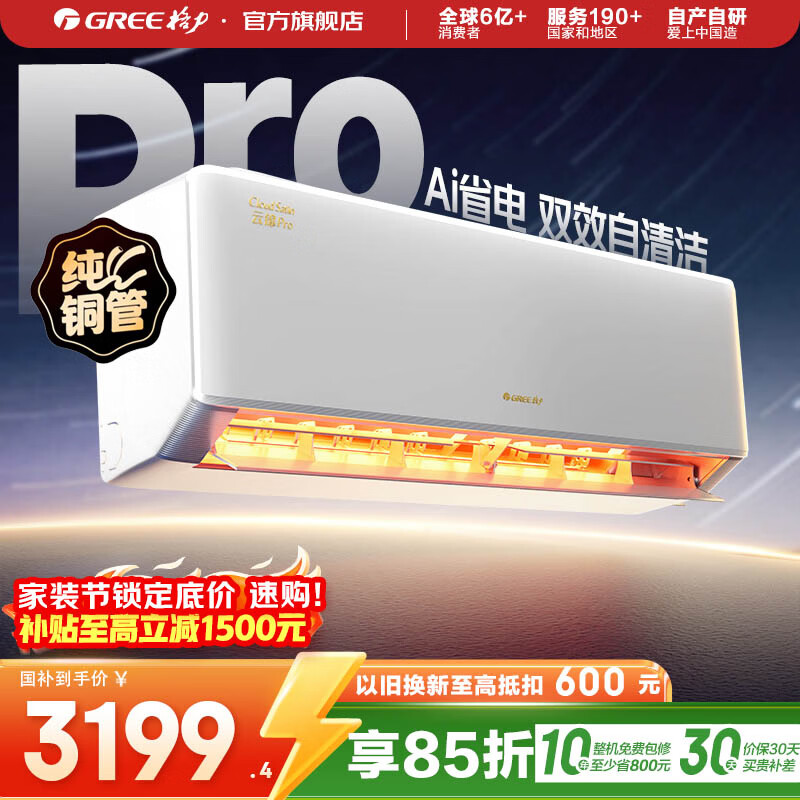 格力(GREE)云锦系列空调 云锦Pro 新升级 新能效 Ai节能变频冷暖自清洁 纯铜管壁挂式卧室空调挂机 家电补贴 1.5匹 云锦Pro新款上市