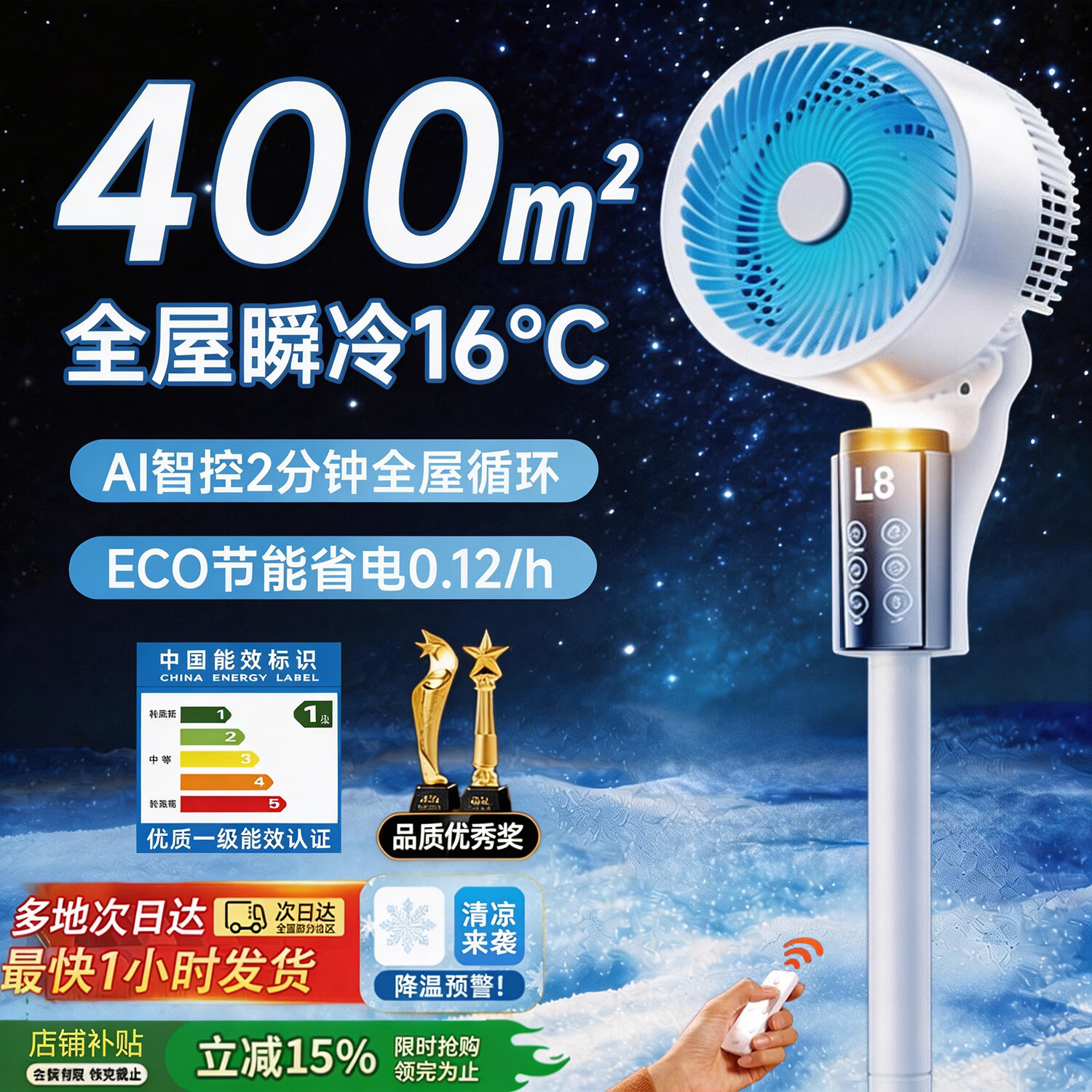 伊曲【AI智控丨比空调冷】电风扇落地扇制冷空调扇空气循环扇家用变频节能静音超大送风量别墅适用 遥控版【8档调节/低噪大风/恒冷双芯/变频】