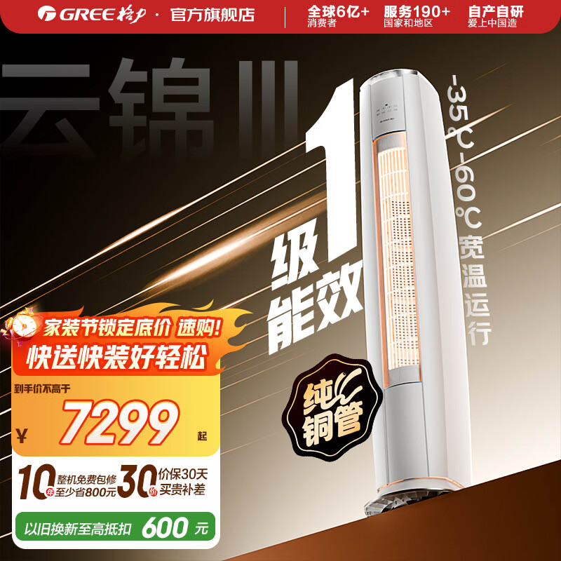 格力空调 3匹 云锦三代 国家补贴 变频冷暖 高温自清洁 智能WiFi 客厅立式空调柜机 以旧换新 云锦III 新一级能效 3匹 第二代冷酷外机