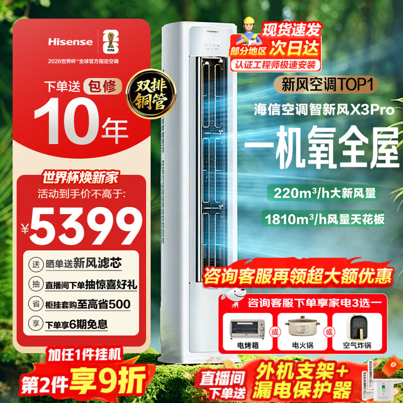 海信(Hisense)【咨询客服更优惠】新风空调X3Pro 大3匹 增氧新风 超大新风量 超一级能效 以旧换新 立式空调柜机 智新风 大3匹 一级能效72LW/X300Pro-X1