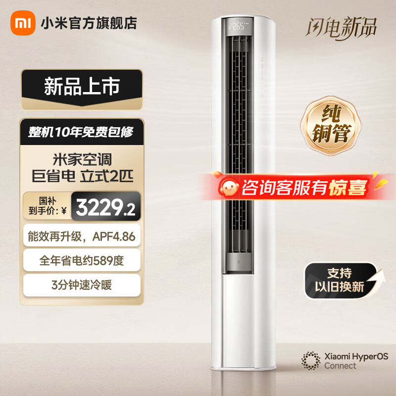 小米立式空调 巨省电 新一级变频冷暖客厅温湿双控智能柜机节能空调大广角超远距送风 国家补贴 巨省电 2026款 大2匹 115°大广角风域