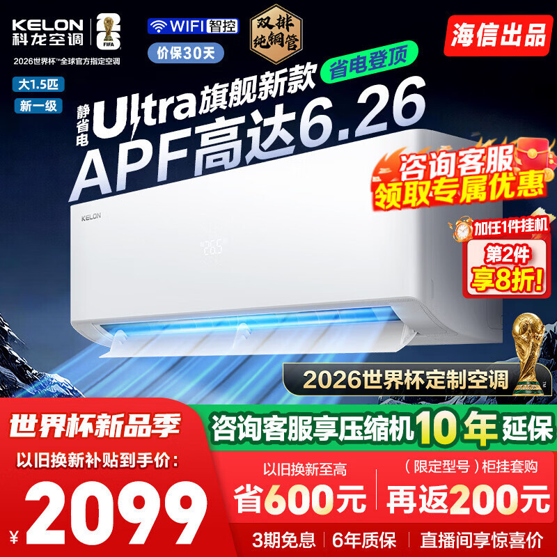 科龙(KELON)海信出品 静省电Ultra 大1.5匹挂机 双排顶配省电神机 超一级能效 变频速冷暖家用卧室壁挂式空调 大1.5匹 超一级能效 双排满配 35QSUltra