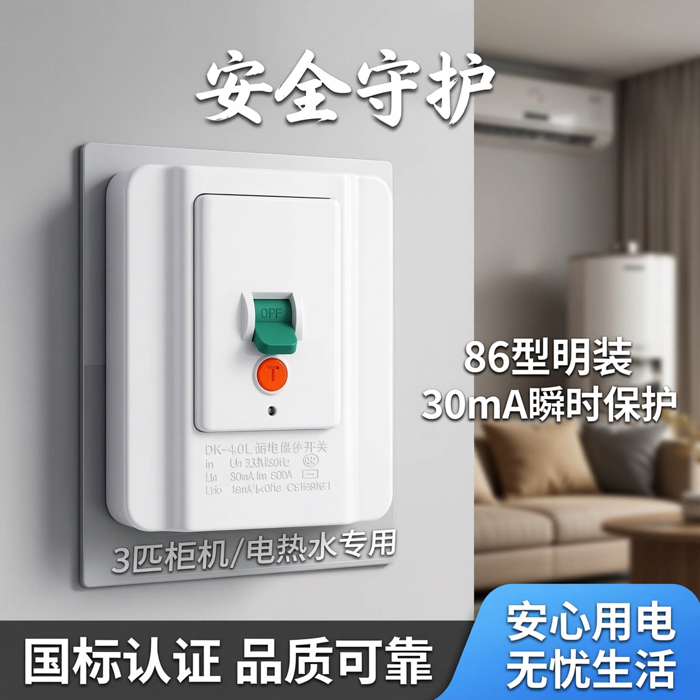 空调专用漏电保护器开关3匹柜机3P空开电热水器插座专用86型明装