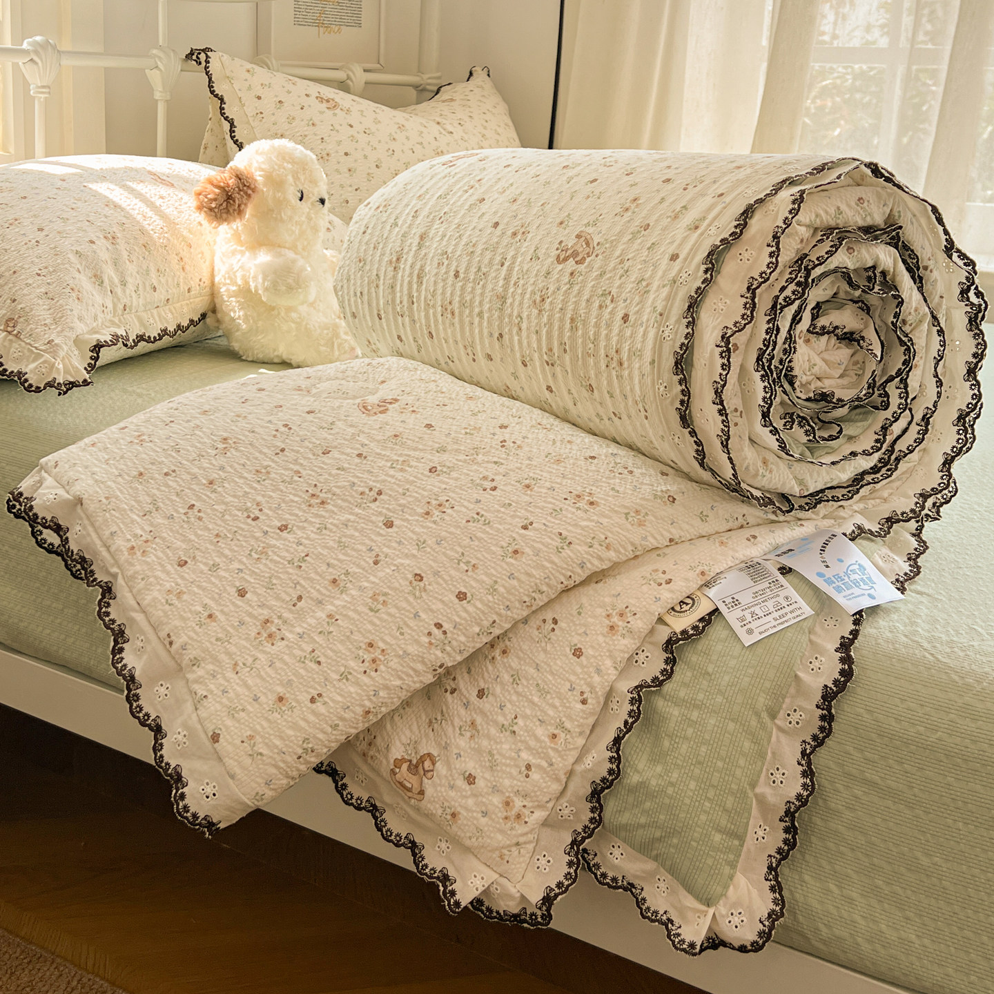 小清新韩版花边款夏被枕套三件套夏凉被夏季单双人空调被子可机洗
