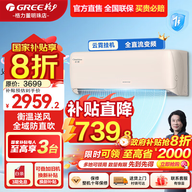 格力(GREE)空调云霓大1.5匹挂机防直吹新一级能效巨省电家用卧室变频冷暖内外机自清洁WiFi智联以旧换新补贴 1.5匹 一级能效 全域防直吹 人气爆款