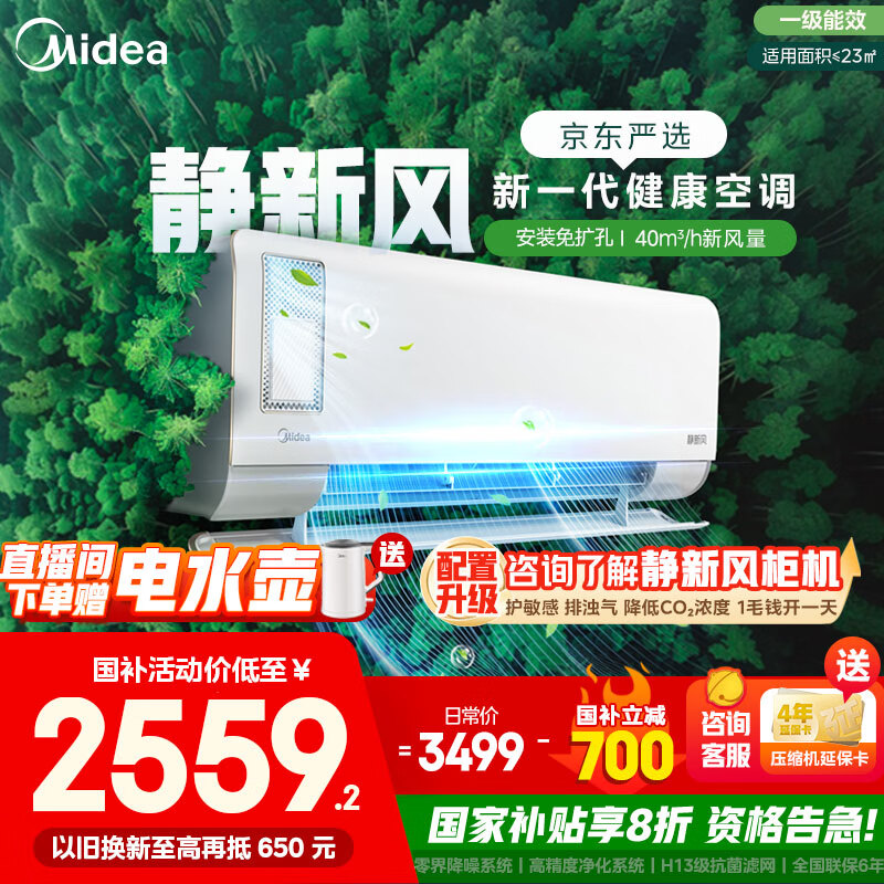 美的静新风空调 挂机 智能变频制暖 自清洁 孕妇月子空调 壁挂式家用健康空调 以旧换新 国家补贴 大1.5匹 一级能效 静新风35XF1-1
