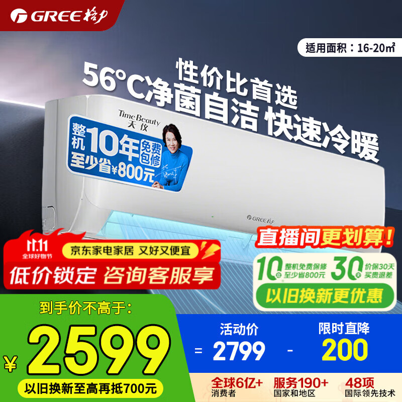 格力(GREE)空调天仪 新一级能效 变频冷暖自清洁 壁挂式卧室空调挂机家电政府补贴 1.5匹 一级能效