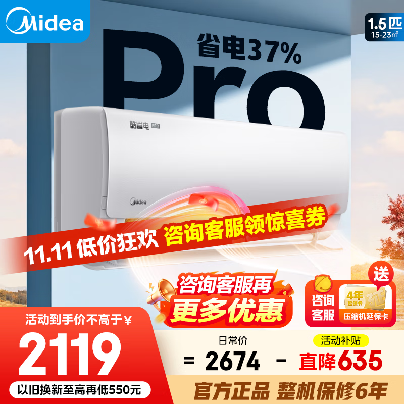 美的(Midea)空调挂机 大1.5匹酷省电Pro新一级能效变频冷暖家用卧室壁挂式防直吹以旧换新家电补贴20% 大1.5匹 一级能效 【酷省电Pro】省电37%
