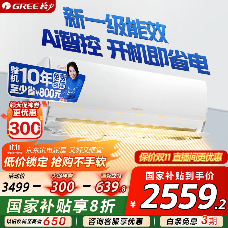 格力(GREE)空调Ai节能王子1.5匹【冷静王升级款】新1级变频冷暖 风不吹人智能省电自清洁 壁挂式静音空调挂机 1.5匹 一级能效 AI节能王子【开机即省电】