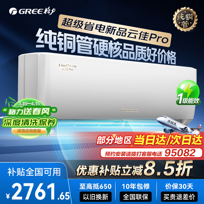 格力空调 云佳pro/Ai节能王子 1.5匹 新一级能效 变频冷暖 省电 纯铜管 壁挂式空调挂机 家电国家补贴 1.5匹 云佳Pro 性价比爆款 纯铜管【冷酷外机】