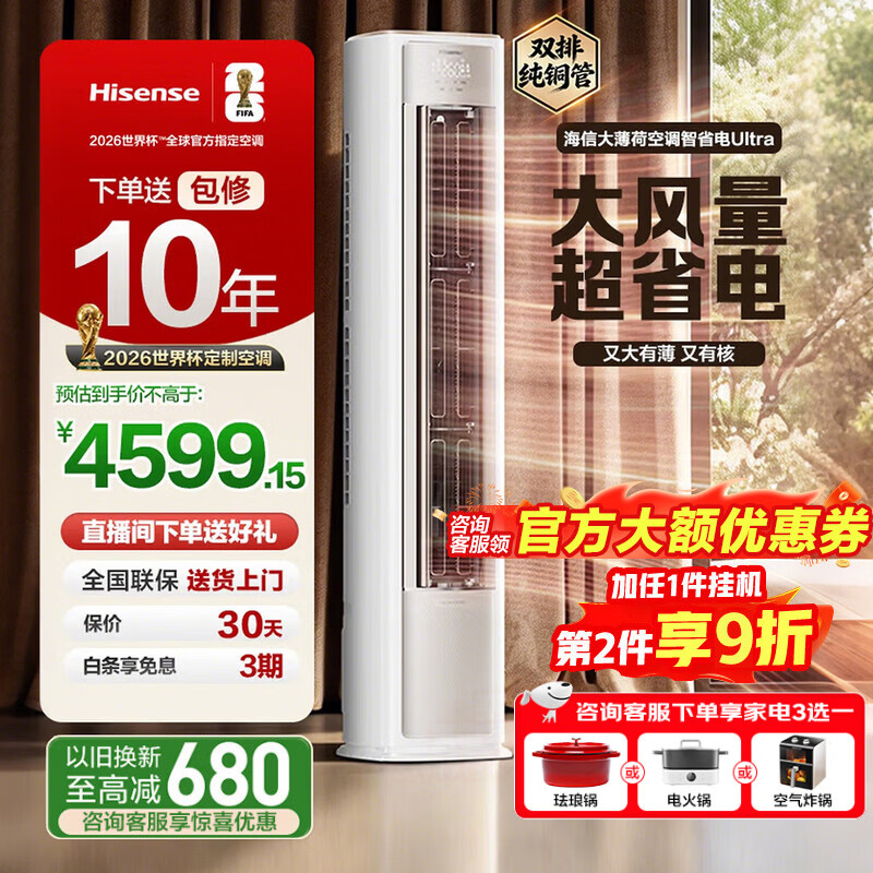 海信(Hisense)大薄荷空调 智省电Ultra大3匹 AI省电 速冷热超大风量 新一级能效 立式空调柜机 国家补贴 大3匹一级能效72LW/E370Pro-X1