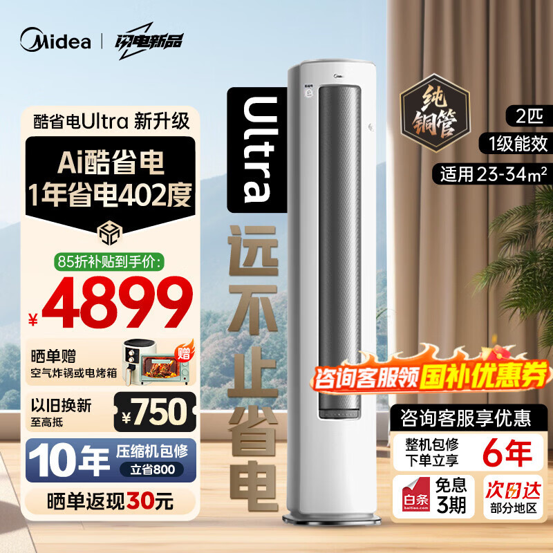 美的(Midea)空调 酷省电Ultra 新一级能效 AI酷省电技术 客厅立式柜机 变频冷暖 以旧换新 国家补贴 立享85折 酷省电Ultra 2匹 店长推荐 一级能效