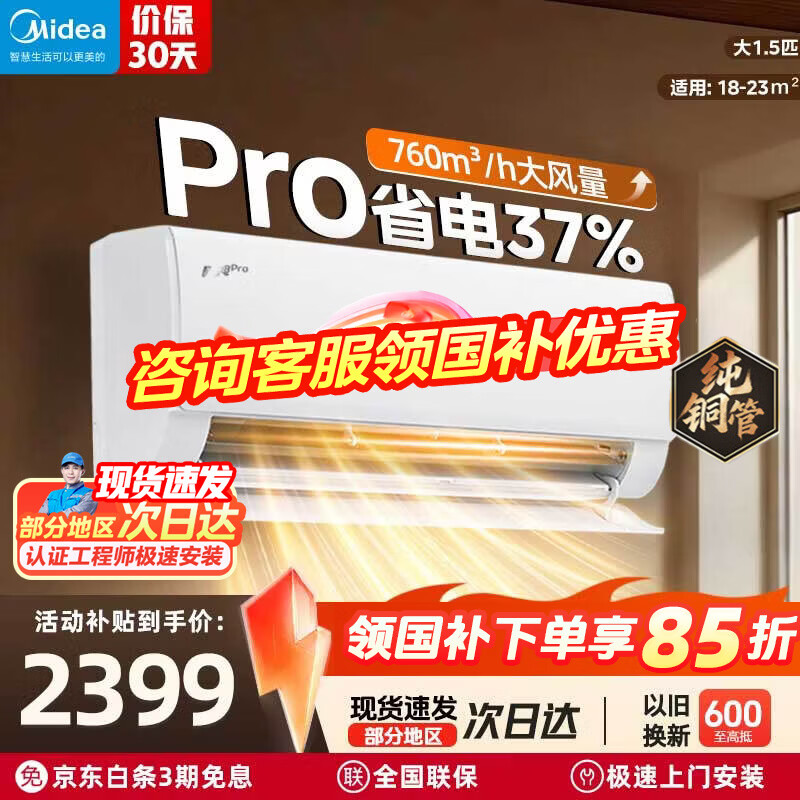 美的(Midea)国家补贴15% 酷省电二代PRO大1.5匹 空调挂机 新一级能效 ultra 变频节能省电冷暖家用卧室壁挂式 酷省电Pro 一级能效 大1.5匹