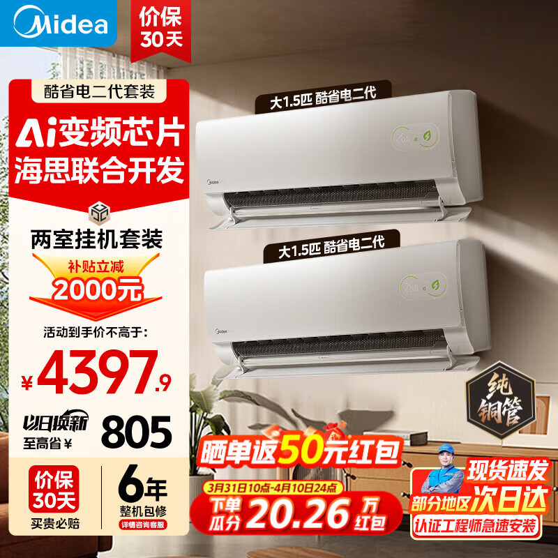 美的(Midea)空调套装 酷省电二代 大1.5匹新一级能效 空调 26年新款 变频冷暖防直吹 智能海思芯片 【26年新款】酷省电二代1.5匹两台