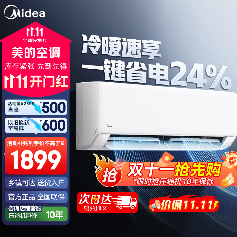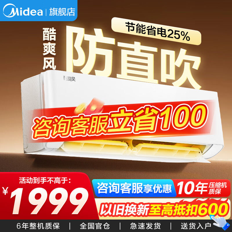 美的空调1.5匹/1匹 酷省电 新一级能效 冷暖变频 节能省电 智能除湿防直吹以旧换新家电国补补贴20% 大1.5匹 一级能效 酷爽风