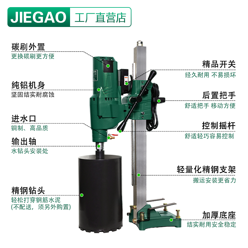 杰高工程级水钻机金刚石转混凝土洞打空调孔大功率手持立式两用器