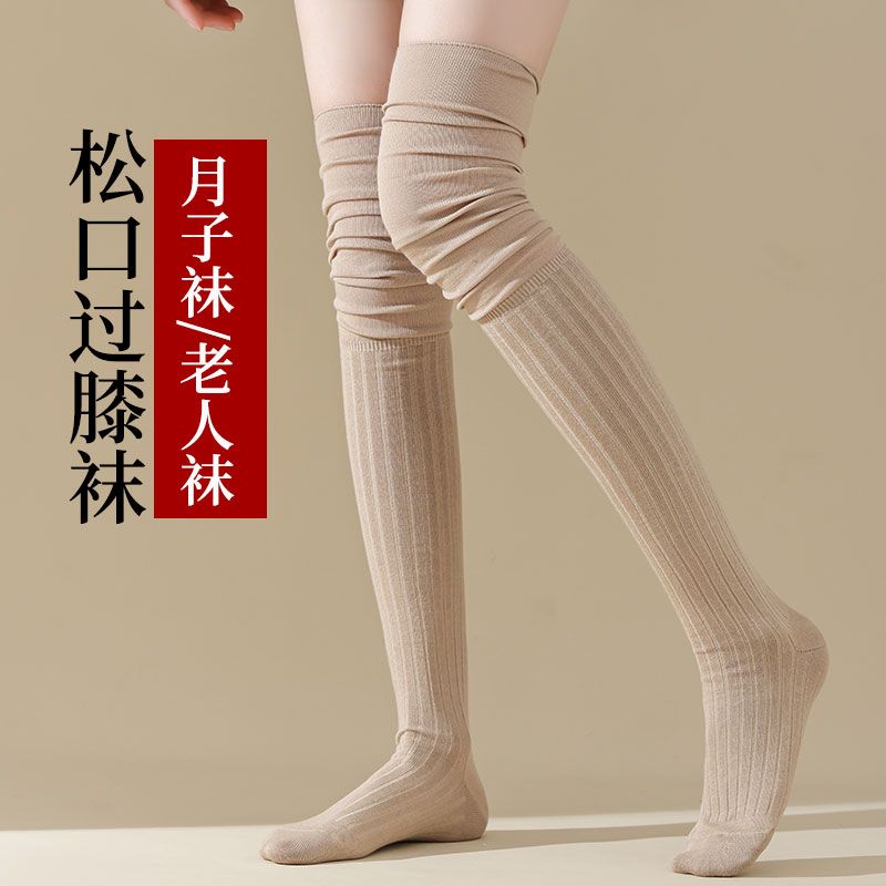 月子袜女过膝袜睡眠袜春秋长筒袜老人松口空调袜睡觉穿的袜子护膝