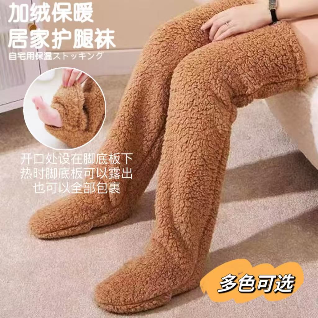 冬季加厚日式暖腿保暖毛绒长裤袜睡眠袜老年人护膝长筒居家空调袜