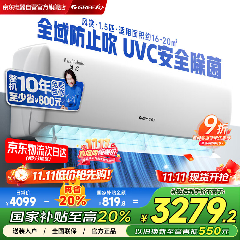 格力(GREE)空调 风赏 1.5匹一级能效变频冷暖 卧室安全除菌空调挂机KFR-35GW/NhAm1BAt 家电国家补贴