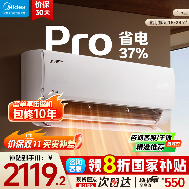 美的(Midea)空调挂机 大1.5匹酷省电Pro 新一级能效变频节能省电低噪音挂式防直吹 美的官方直营 国家补贴20% 大1.5匹 一级能效 酷省电pro
