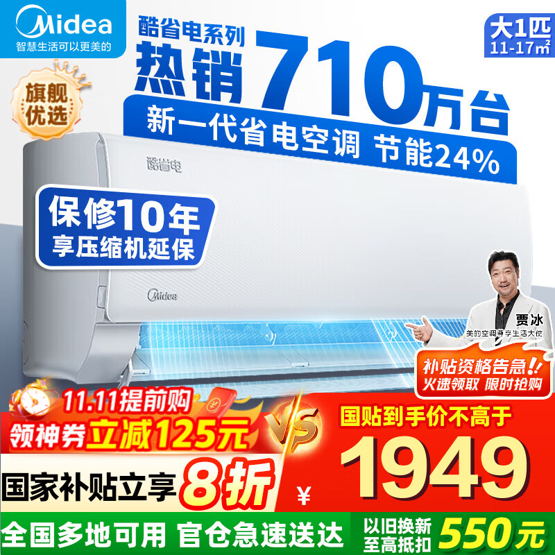 美的(Midea)酷省电 爆款推荐 空调挂机 大1.5匹新一级能效全直流变频节能低噪音防直吹 以旧换新 国家补贴20% 大1匹 一级能效 酷省电pro