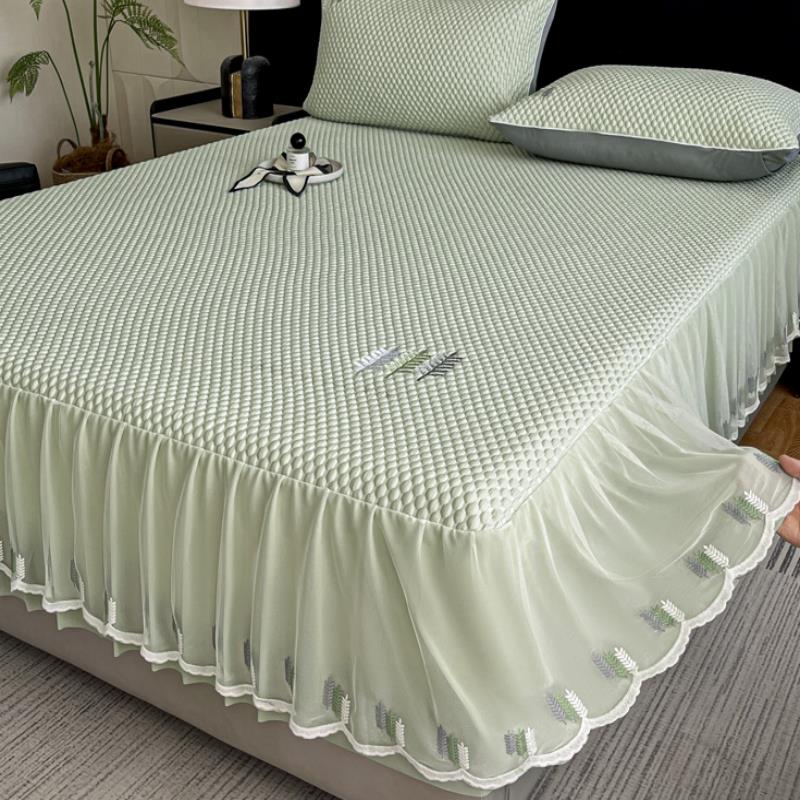 夏季冰丝凉席三件套凉感豆豆凉席床裙款夏天床罩空调席软席可机洗