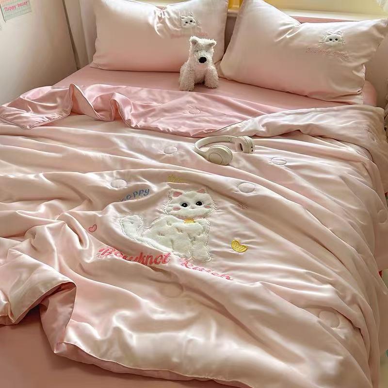 可爱毛巾绣夏凉被四件套夏季空调薄被子单人夏被可机洗非全棉