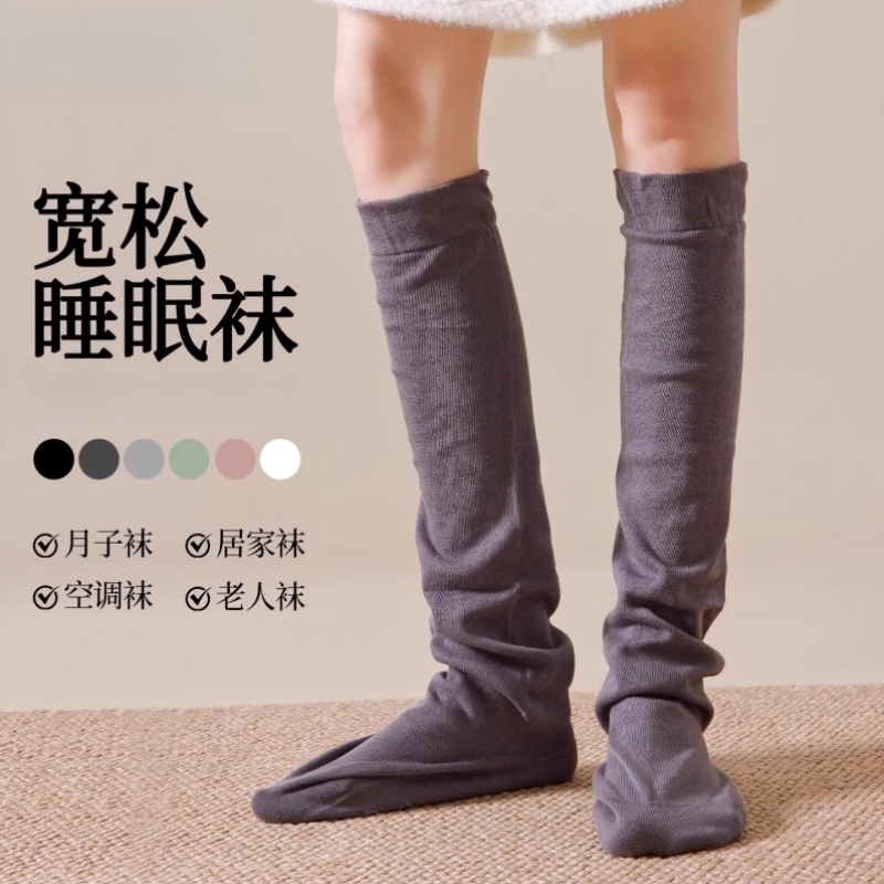 睡觉穿的宽松口纯棉小腿袜子女坐月子老人空调袜长筒晚上睡眠专用