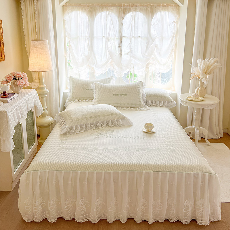 冰丝凉席欧式床裙款席子三件套1.8m空调软席可机洗折叠蕾丝床罩席