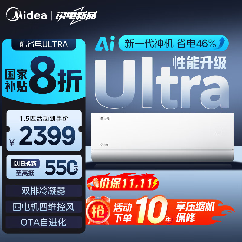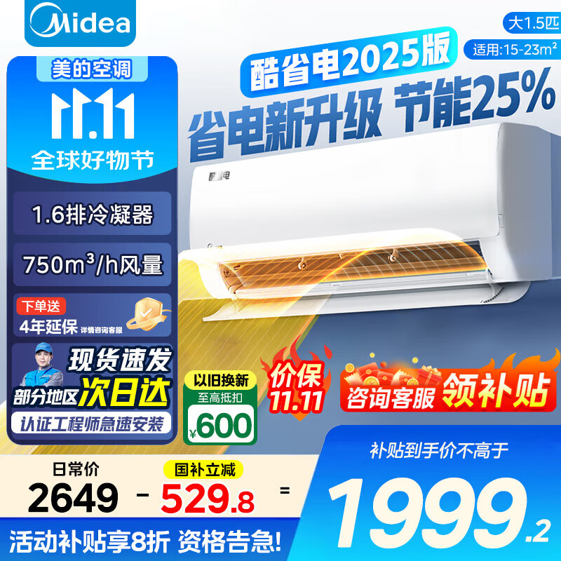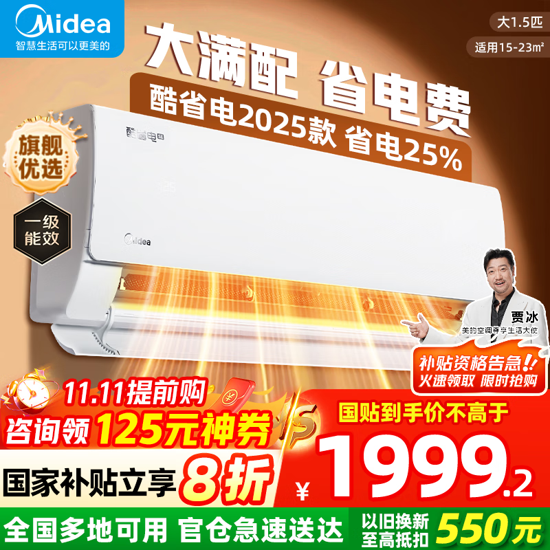 美的(Midea)【国家补贴20%】空调挂机 大1.5匹 酷省电2025版 Ultra 新一级能效 变频冷暖除湿 卧室壁挂式空调 大1.5匹 一级能效 酷省电2025款 新品热销