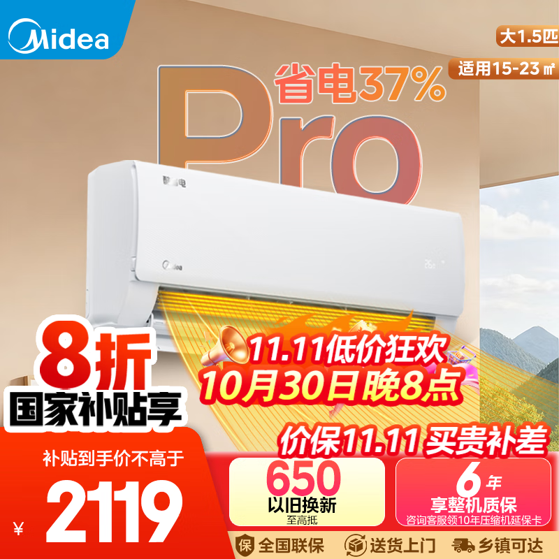 美的(Midea)空调大1.5匹 酷省电PRO升级款 新一级能效变频家用挂机壁挂式节能 国家补贴20% 智能家电以旧换新 大1.5匹 一级能效 酷省电PRO