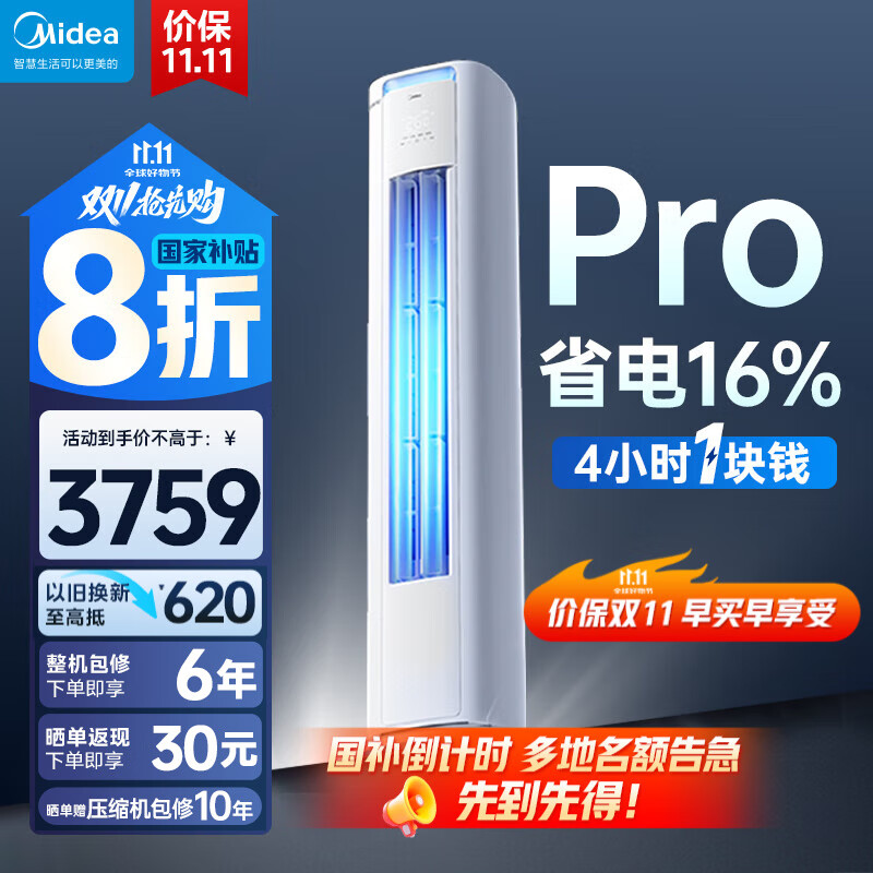 美的(Midea)酷省电3匹新一级能效PRO变频冷暖 客厅空调柜机立式 APP 独立除湿 升级款 国家补贴20% 以旧换新 大2匹 一级能效 酷省电PRO柜机